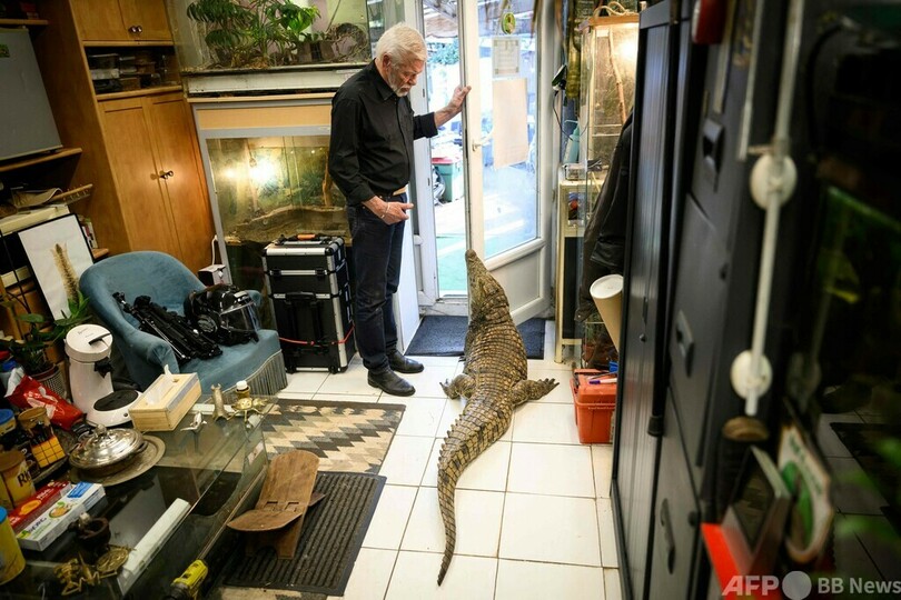 ニュース ライフ 今日の1枚 【今日の1枚】「さあ、散歩の時間」 フランス 2024年12月3日 12:15 発信地:クウェロン/フランス [ フランス ヨーロッパ ] このニュースをシェア ‹ › ❮ 1/4 ❯ フランス・ナント郊外のクウェロンで、自宅で飼うワニのためにドアを開ける72歳のフィリップ・ジレさん(2024年11月15日撮影)。(c)Loic VENANCE / AFP 画像作成中 ! 【12月3日 AFP】フランス・ナント郊外のクウェロンで、自宅で飼うワニのためにドアを開ける72歳のフィリップ・ジレさん。ジレさんは、野生の3匹のワニを含め400匹以上の動物を自宅で飼育している。(c)AFP ライフ 一覧へ> メディア・報道関係・法人の方向け 写真・動画 購入のお問合せ>