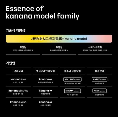 カナナ-vは、韓国語の独自性や文化的な文脈を深く理解し、OCR(光学文字認識)、文書や表の理解、問題解決、韓国文化に関する知識の分野で高い性能を発揮する。カカオは、このモデルを多様な韓国語タスクをこなせるよう設計している。