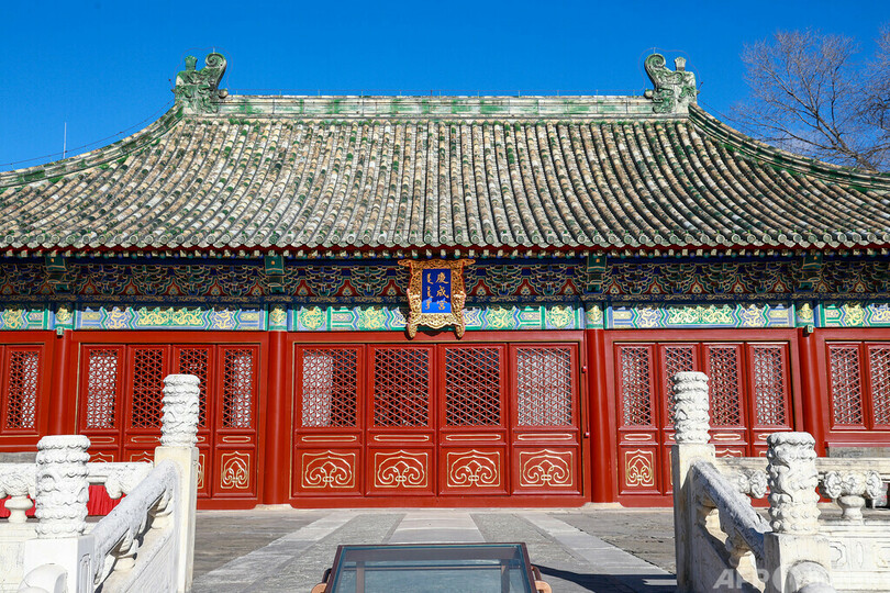 薛館長によると、慶成宮は先農壇の外壇の東側に位置し、玄関は南向きで、玄関から北へと三つの庭園を持つ配置です。本殿と後殿の屋根の形はいずれも寄棟造(よせむねづくり)で、金色の龍や鳳凰の彩画が施されています。また、本殿と後殿の間には東側と西側にそれぞれ配殿が建てられています。慶成宮古建築群は先農壇内で最も等級が高く、典型的な明の皇室建築の様式です。