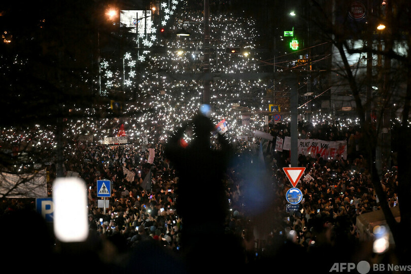 ニュース 社会 今日の1枚 【今日の1枚】光の抗議デモ セルビア 2025年1月4日 12:15 発信地:ベオグラード/セルビア [ セルビア ヨーロッパ ] このニュースをシェア ‹ › ❮ 2/3 ❯ セルビア・ベオグラード中心部で、高等教育機関が広く閉鎖される中、15人が死亡した先月の駅舎崩落事故をめぐる抗議デモに参加した数千人もの学生や市民を撮影する男性(2024年12月22日撮影)。(c)DJORDJE KOSTIC / AFP 画像作成中 ! 【1月4日 AFP】セルビア・ベオグラード中心部で、高等教育機関が広く閉鎖される中、15人が死亡した先月の駅舎崩落事故をめぐる抗議デモに参加した数千人もの学生や市民を捉えた空撮写真。(c)AFP 社会 一覧へ> メディア・報道関係・法人の方向け 写真・動画 購入のお問合せ>