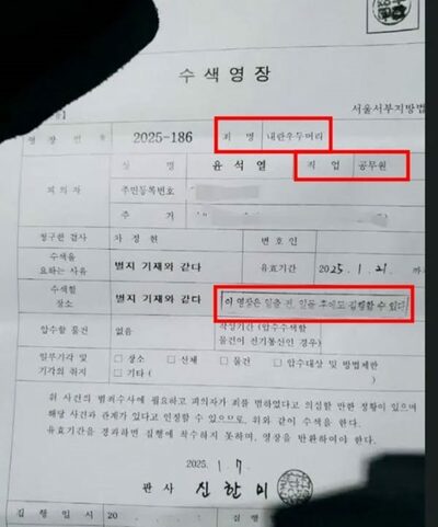 「職業・公務員」「罪名・内乱の首謀者」…尹大統領「捜索令状」写真、オンラインで拡散中