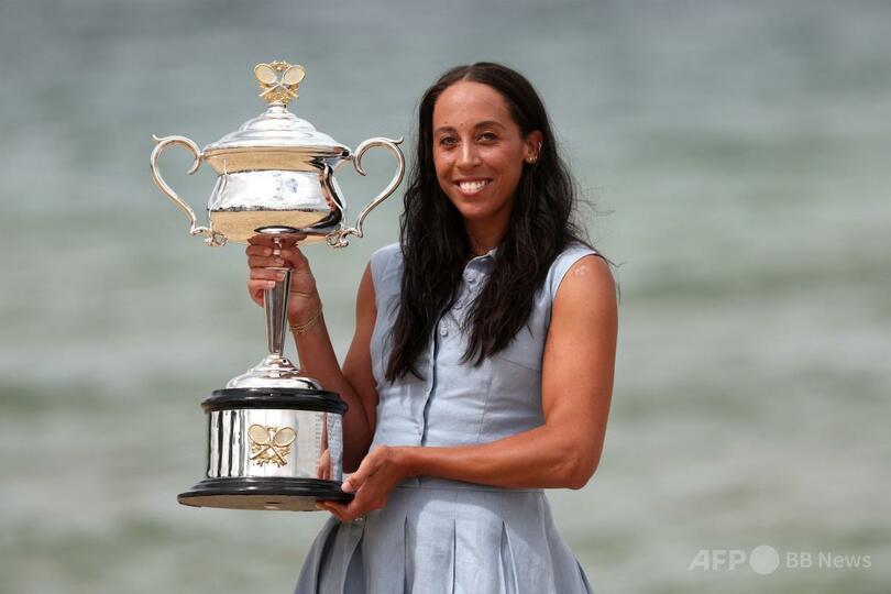 【1月26日 AFP】全豪オープンテニスの女子シングルス制覇から一夜明けた26日、マディソン・キーズ(米国)がメルボルン市内のブライトンビーチで優勝トロフィーを手に写真撮影に臨んだ。