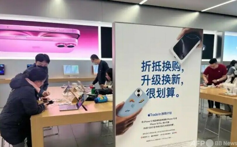 第三者市場調査機関のデータによれば、新たな補助金購入政策により携帯電話市場の販売量は一斉増加し、春節(旧正月、今年は1月29日)前の1週間に携帯電話の販売量は前週比74%増、前年同期比30%増、売上高は前週比65%増、前年同期比34%増でした。春節大型連休期間中(1月28日~2月4日)の価格帯別携帯電話販売台数は、2000元(約4万2000円)以下の機種が前年春節連休期間と比べて10%増、2000~4000元(約4万2000円~8万4000円)が同52%増、4000~6000元(約8万4000~12万6000円)が108%増を記録したとのことです。(c)CGTN Japanese/AFPBB News