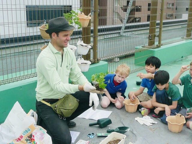 ウォルシュ氏は娘にも野菜の育て方を教えた。彼女が思いのほか短時間で基本をマスターしたため、彼はあるアイデアを思いついた。「東京インターナショナルスクールの創設者に連絡を取り、学校で食物を栽培しているか尋ねてみたのです。すると、そういうことはしていないが興味があるとのことで、私を学校に招いてくれました」。いかに簡単に食物を育てられるかウォルシュ氏が学校で実演すると、生徒たちは大喜びで、それを見た学校が彼をアーバンファーミングの非常勤講師として採用してくれることになった。