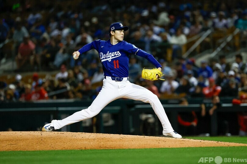 【3月5日 AFPBB News】米大リーグ(MLB)のオープン戦が4日、各地で行われ、ロサンゼルス・ドジャースの佐々木朗希がシンシナティ・レッズ戦で初登板し、3回を投げて2安打無失点、5奪三振の好投を見せた。先発した山本由伸は4回を4安打2失点、3奪三振。大谷翔平は1番・指名打者(DH)で出場し、3打数1安打だった。(c)AFPBB News