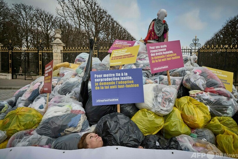 【今日の1枚】衣類の大量廃棄に抗議 仏