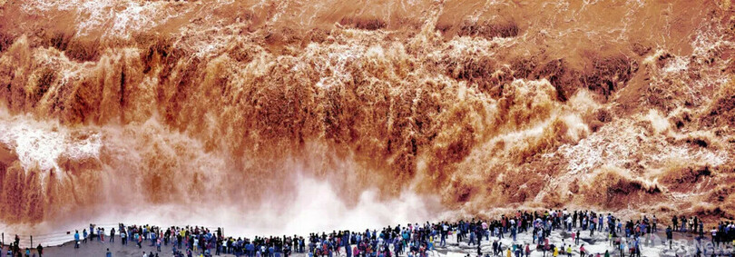 黄河(Yellow River)が発する轟音は、まるで万馬の奔走のようだ。崖の上から流れ落ち、突然深い淵に落ち込む。大きな波しぶきが立ち、水霧(すいむ)が巻き上がる。劉さんは息を止め、素早く「カシャ、カシャ」とシャッターを切り「黄河壺口瀑布(Hukou Waterfall)」の壮大な水勢をカメラに収める。
