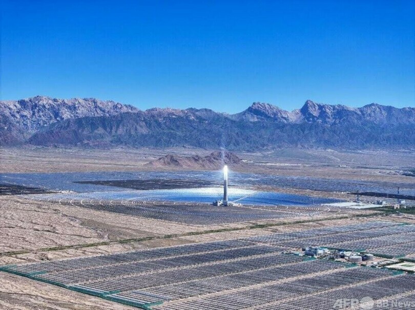 【3月26日 Peopleʼs Daily】青海省(Qinghai)海南チベット族自治州(Hainan Tibetan Autonomous Prefecture)共和県鉄蓋郷の「塔拉灘」の広大な平原を歩くと、遠くからでもまばゆい光の柱が目に入る。これが「溶融塩式太陽熱発電タワー」だ。昼間でも、高さ100メートルを超えるタワーの頂上から放たれるまばゆい光には目を奪われる。そして、その下には広大な青い太陽光発電パネルのフィールドが広がり、絶え間なく光エネルギーを上へと送り続けている。