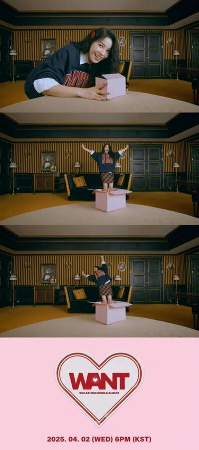 【03月25日 KOREA WAVE】韓国の女性グループMAMAMOO(ママム)のソラが25日午前0時、公式SNSを通じて2枚目のシングル「WANT」の第2弾プレビュー映像を公開した。