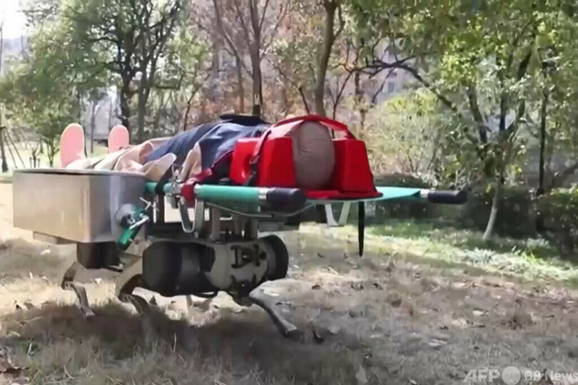 一方の「四足救急搬送ロボット」は、担架を背負って負傷者を迅速に搬送する過程で、両側につり下げた「ポータブル救急設備」を運用し、負傷者に対して自動的かつ正確に「移動中の救急処置」を実施することができます。