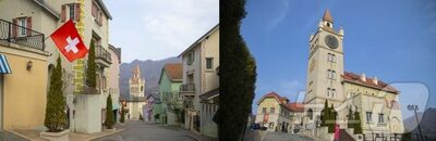 京畿道加平(カピョン)郡にあるこのテーマパークは、実際に住民が暮らす本格的なスイス風の村。入り口には小さな広場があり、その両側にはレストランや展示館が並ぶ。