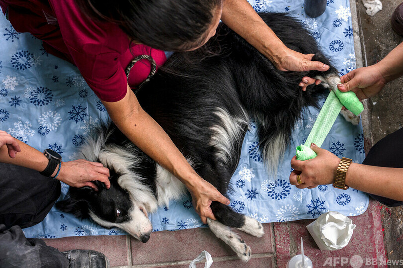【今日の1枚】不明者家族に寄り添う救助犬、タイのビル倒壊現場で