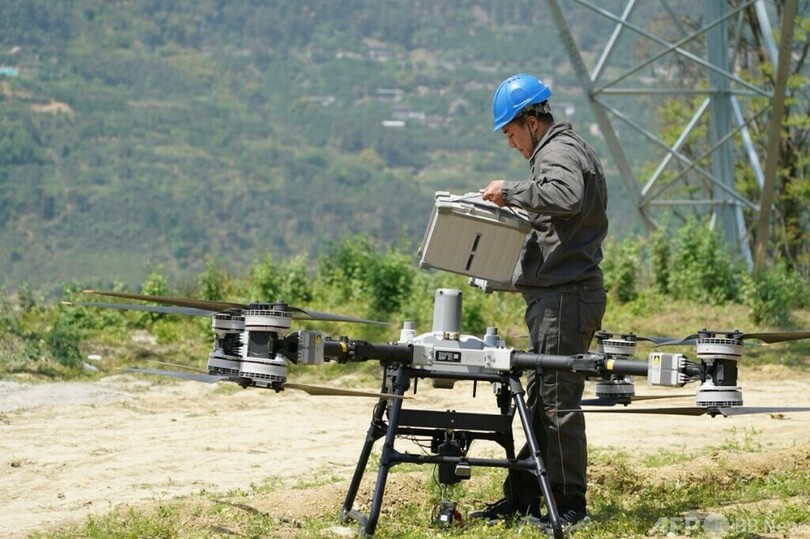 【4月10日 CGTN Japanese】中国南西部の重慶市万州区の長江河畔で7日、金沙江上流-湖北±800キロボルト特別高圧直流送電プロジェクトの長江を跨ぐ作業が始まりました。現場では大型ドローンがガイドロープを搭載して長江南岸の鉄塔付近から離陸し、幅935メートルの川を越え、北岸の鉄塔に向かい安定して飛行しました。5分後、ドローンは正確かつ穏やかにガイドロープを対岸の鉄塔にいる作業員の手に渡し、両岸の鉄塔の「連結」に成功しました。これは中国南西地区で初めて特別高圧プロジェクトのロープ架設作業に大積載ドローンが使用されたもので、作業効率を大幅に高めることができました。