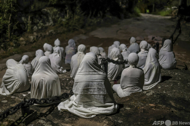【5月1日 AFP】ブラジル・バイア州シャパーダ・ディアマンティナ国立公園にある孤立した小村落イガトゥで「テルノダスアルマス」の行進が行われ、十字架のそばに集まる白装束のカトリック信者ら。テルノダスアルマスは、聖週間の夜に村落中を巡回し、死者に祈りと歌を捧げる古代儀式だ。(c)AFP