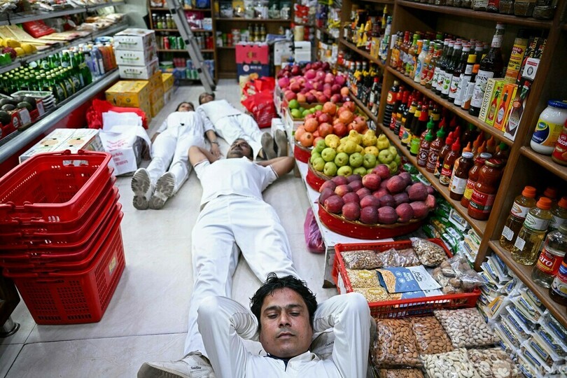 【5月16日 AFP】対パキスタン国境での緊張が高まる中、インド・ニューデリーで、全国民間防衛模擬訓練の一環として緊急シミュレーション訓練に参加する人々。核保有国の同国とパキスタンで、20年ぶりに激しい衝突が起きた。(c)AFP