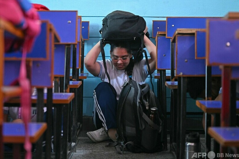 【5月16日 AFP】対パキスタン国境での緊張が高まる中、インド・ニューデリーで、全国民間防衛模擬訓練の一環として緊急シミュレーション訓練に参加する人々。核保有国の同国とパキスタンで、20年ぶりに激しい衝突が起きた。(c)AFP