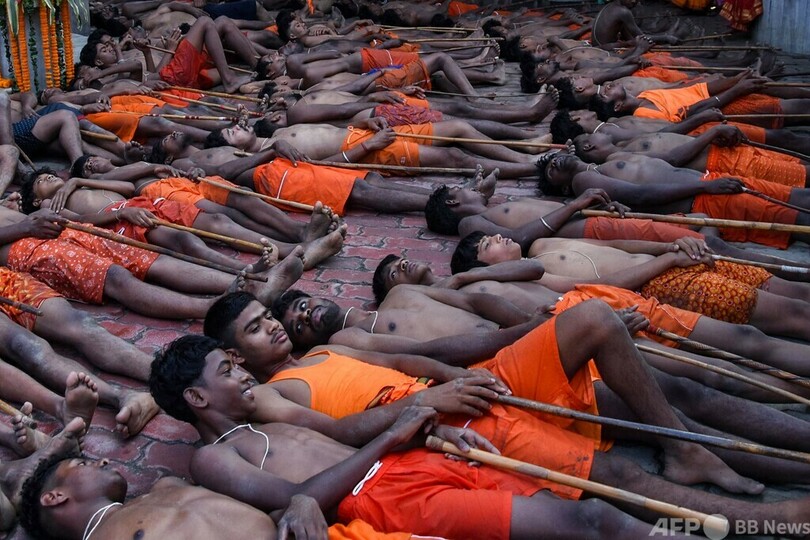 ニュース ライフ 今日の1枚 【今日の1枚】祝福を寝て待つ信者 インド 2025年5月25日 12:15 発信地:ランチー/インド [ インド アジア・オセアニア ] このニュースをシェア インド・ランチーにあるヒンズー教のシバ神をまつる寺院で「マンダプジャ」の祭典が行われ、豊作と繁栄、平和を願い、司祭から祝福を受けるために棒を抱いて横たわる人々(2025年5月12日撮影)。(c)Rajesh KUMAR / AFP 【5月25日 AFP】インド・ランチーにあるヒンズー教のシバ神をまつる寺院で「マンダプジャ」の祭典が行われ、豊作と繁栄、平和を願い、司祭から祝福を受けるために棒を抱いて横たわる人々。(c)AFP ライフ 一覧へ> メディア・報道関係・法人の方向け 写真・動画 購入のお問合せ>