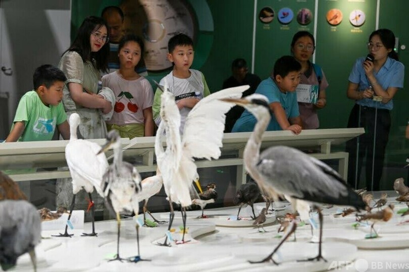 「バードウオッチングツアーがクリエイティブカルチャーブームを牽引し、ブームが消費を促進した。湿地生態関連グッズの総売上額は全市で3000万元(約5億9010万円)を超え、まさに数千万元規模の付加価値を生み出している」、塩城市委員会宣伝部文化産業処の金竜飛(Jin Longfei)処長は湿地観光の経済効果をこのように説明した。(c)PeopleʼsDaily/AFPBBNews