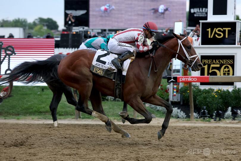 【5月18日 AFP】米国競馬のG1レース、第150回プリークネス・ステークス(3歳、ダート約1900メートル)は17日、米メリーランド州ボルティモアのピムリコ競馬場で開催され、ウンベルト・リスポリ騎手騎乗の一番人気ジャーナリズムが劇的な優勝で米競馬三冠レースの2戦目を制した。