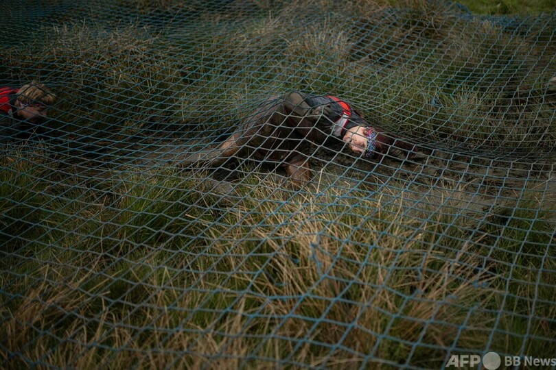 【5月29日 AFP】英イングランド北部ピーク地方の湿原で行われた泥んこ障害物レース「ボグ・コマンダー」の参加者。アッシュボーン近郊で。2014年に始められたこのレースは、6キロのぬかるんだコース中に30以上の人工の障害物が設けられている。(c)AFP