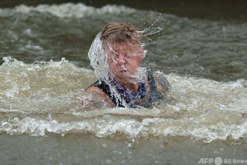 【5月29日 AFP】英イングランド北部ピーク地方の湿原で行われた泥んこ障害物レース「ボグ・コマンダー」の参加者。アッシュボーン近郊で。2014年に始められたこのレースは、6キロのぬかるんだコース中に30以上の人工の障害物が設けられている。(c)AFP