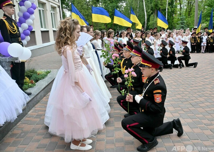 ニュース ライフ 今日の1枚 【今日の1枚】卒業を祝う舞踏会 ウクライナ 2025年6月9日 12:15 発信地:キーウ/ウクライナ [ ウクライナ ロシア・CIS ] このニュースをシェア ‹ › ❮ 2/4 ❯ ウクライナ・キーウにある軍関係の寄宿学校で、学期末の卒業舞踏会が行われ、バラの花を手に女子生徒の前でひざまづく生徒(2025年5月23日撮影)。(c)Sergei SUPINSKY / AFP 画像作成中 ! 【6月9日 AFP】ウクライナ・キーウにある軍関係の寄宿学校で、学期末の卒業舞踏会に参加する生徒。生徒には、ロシアとの戦争で死亡した軍人の子どもも含まれている。(c)AFP ライフ 一覧へ> メディア・報道関係・法人の方向け 写真・動画 購入のお問合せ>