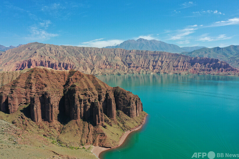 カンブラ世界ジオパークは青海省黄南チベット族自治州に位置し、総面積は3149.34平方キロメートルに及びます。同パークには、三畳紀からジュラ紀にかけての地層構造とインドシナ期・燕山期のマグマ活動の記録が完全に残されています。科学者たちはここでチベット高原の隆起と古代の海洋消失の重要な証拠を見つけることに成功しており、「海から陸地への変化の生き証人」と呼ばれています。カンブラでは、赤色の山脈が朝日の中で輝きを見せる丹霞地形はまるで太古の巨匠が丹念に彫った作品群、黄河の流れはあたかも1本の翡翠のリボンのようで、青い水に囲まれた赤い山の独特な景観が形成されており、人々からは「高原上の美しい水墨画」と呼ばれています。(c)CGTN Japanese/AFPBB News