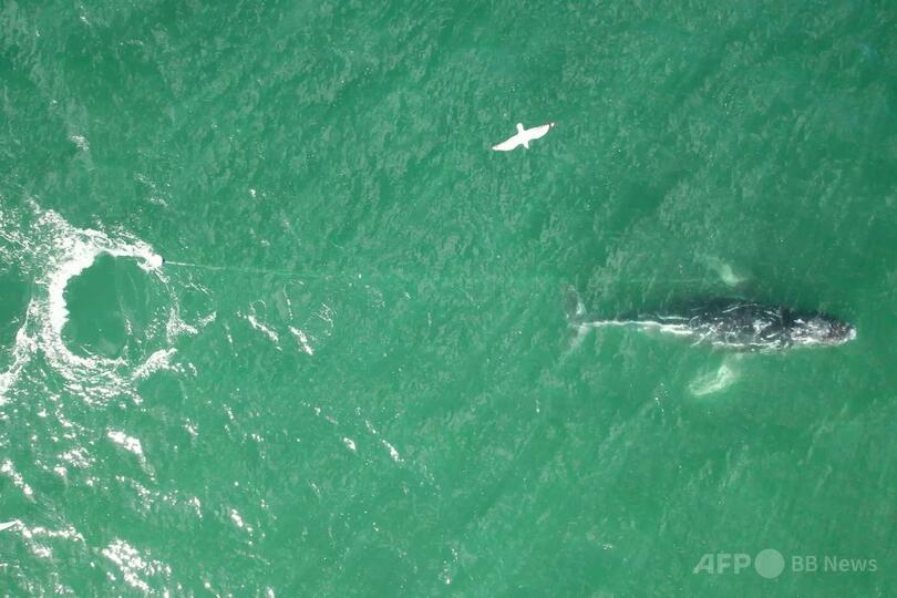 ロープに絡まったクジラを捜索、上空からの映像で確認 オーストラリア