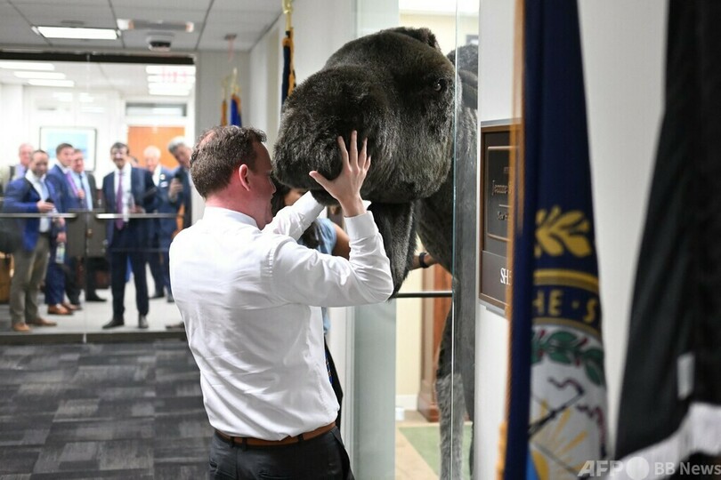 【6月25日 AFP】米ワシントンで、ハート議員会館にあるジーン・シャヒーン上院議員の事務所へ議会スタッフらの手によって運ばれるヘラジカの「マーティ」。毎年恒例の「ニューハンプシャー体験会」で、マーティはホワイト山脈のアンバサダーを務めている。(c)AFP