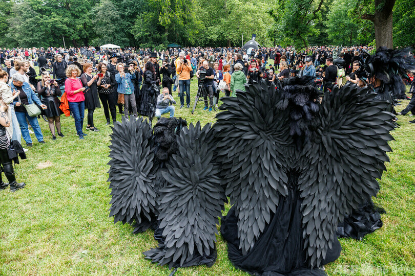 【6月23日 AFP】ドイツ東部ライプチヒのクララ・ツェトキン公園で、毎年恒例のゴシック・サブカルチャーの祭典「ウェイブ・ゴシック・フェスティバル」が開かれ、初日の催し「ビクトリアン・ピクニック」に参加する人々。(c)AFP