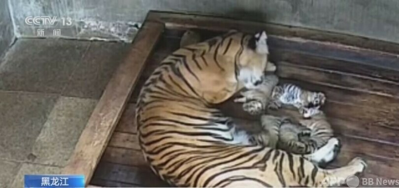 中国の国家1級野生保護動物であるアムールトラは、1度の出産で2~3頭を産むのが一般的で、五つ子の出産は非常に珍しいとのことです。(c)CGTN Japanese/AFPBB News