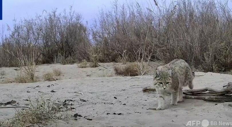 アジアヤマネコは中国語では「草原斑猫(学名:Felis silvestris shawiana)」とも呼ばれ、アジア内陸部の乾燥地帯に生息する小型ネコ科の動物です。中国では主として、新疆ウイグル自治区、甘粛省、寧夏ホイ族自治区などに分布しており、中国北西部砂漠生態系の頂点に位置する捕食者として、地域の生態バランスを維持する上で重要な役割を果たしています。今回のタクラマカン砂漠奥地でのアジアヤマネコの確認は、同地域の生態環境が健全で食物資源が豊富であることを示す証拠となりました。(c)CGTN Japanese/AFPBB News