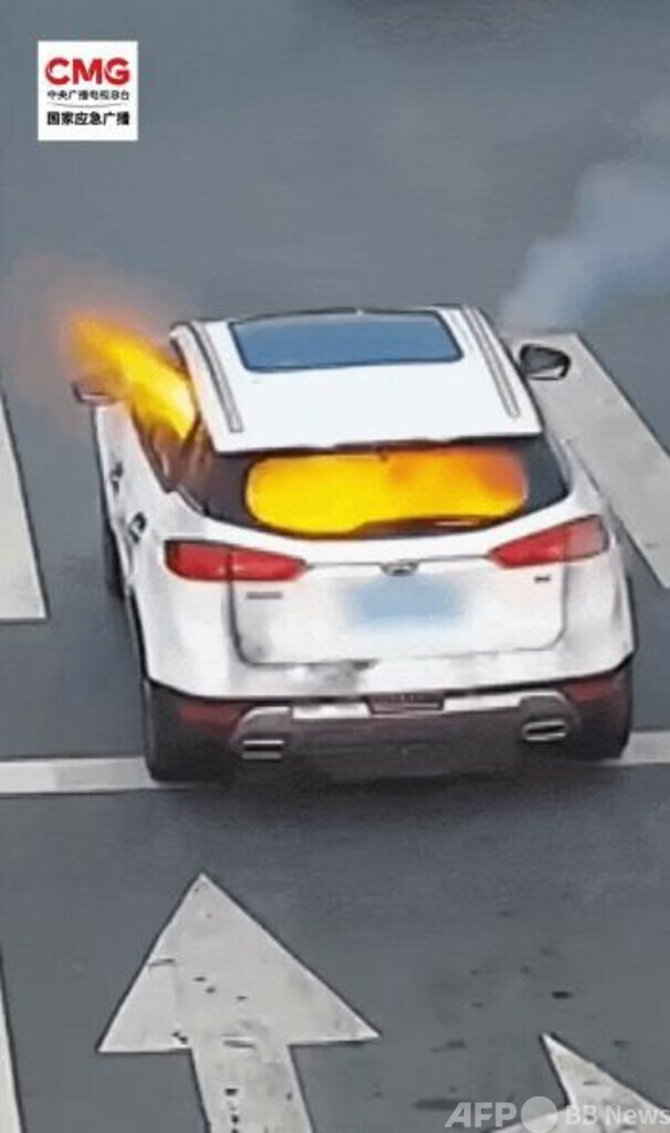 一方、北京市大興区では先月、自家用車のフロントガラスから火が出て炎上した事故が発生しました。消防隊員が調べたところ、車の持ち主が車内に置いていたモバイルバッテリーが高温の環境下で化学反応を起こして自然発火したことが分かりました。