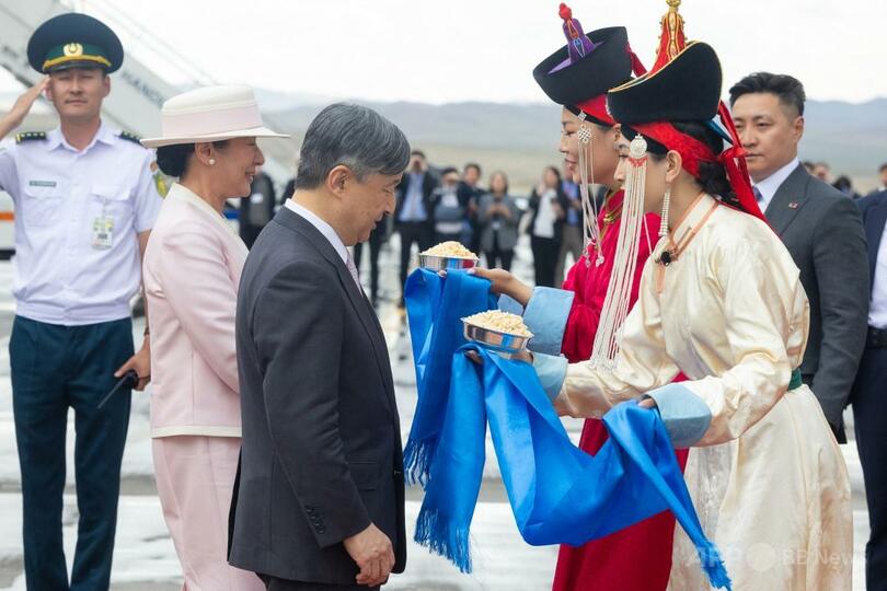【7月7日 AFP】天皇、皇后両陛下は6日、公式訪問先のモンゴルに到着された。
