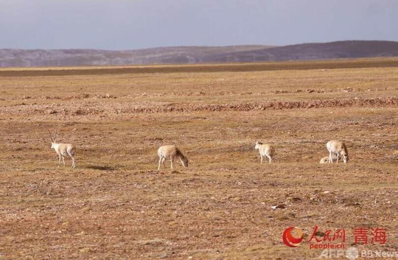 記者は「三江源国家公園ココシリ管理所」の巡視隊員に連れられて、国道109号線を左折し「卓乃湖」に向かう道を進んだ。道中、チベットノロバ、野生のヤク、チベットアンテロープの群れが、道の両側に現れた。