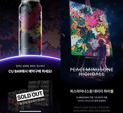 韓国の人気アーティストG-DRAGON(ジードラゴン)が企画から関わったハイボールシリーズ「ピースマイナスワン(PEACE MINUS ONE)」の第3弾「ピースマイナスワン デイジー(PEACE MINUS ONE DAISY)」が、事前予約販売で即完売となった。販売を担当する大手コンビニチェーンCUを運営するBGFリテールが7月16日に明らかにした。