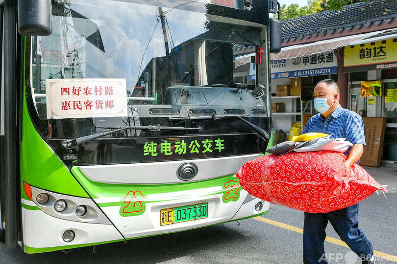 中国の農村部では、こうした協力パターンが以前から実施されてきました。例えば、南部の広州バスグループは2019年から農村部の旅客輸送路線を利用し、中国郵政と協力して貨客郵便ネットワークを構築し、宅配便が物流機能で直面していた難題を解決しました。今回の「バス+宅配便」モデルは、都市部の物流業発展に新たな展望を開きました。(c)CGTN Japanese/AFPBB News