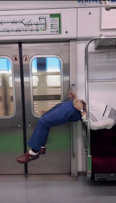 ソウル地下鉄がジムに?…手すりで宙に浮く“迷惑”“危険”なストレッチおじいさん