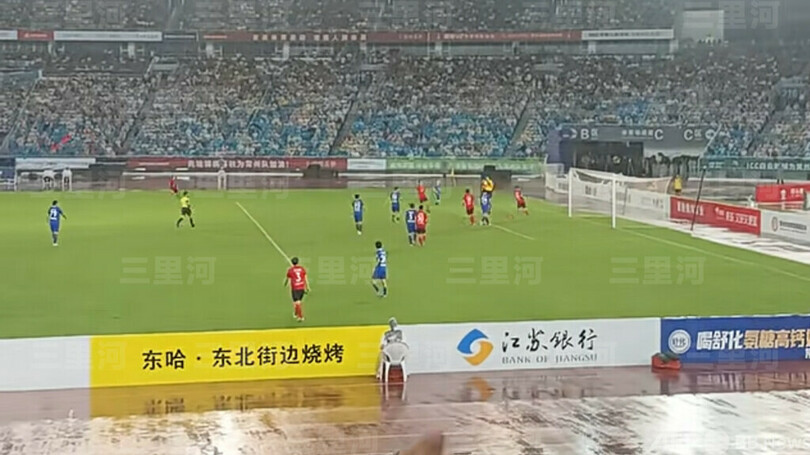 【8月14日 CNS】今季の雨の中で行われた江蘇省(Jiangsu)サッカーリーグ「蘇超」の一戦は、常州市(Changzhou)が惜しくも南京市(Nanjing)に敗れた。しかし、カメラがピッチ脇の広告板を映した瞬間、思わぬ注目を集めたのは、京東(JD.com)や江蘇銀行(Bank of Jiangsu)などの有名企業と並んで表示された「東哈・東北屋台焼き串」という小さな個人経営の焼き鳥店だった。