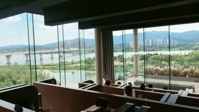 記者が7月30日午後2時に訪れた際には、19席が満席で、訪問客は皆静かに読書や映画鑑賞など各自の活動に没頭していた。南漢江(ナムハンガン)を一望できる窓際の席では、水面を眺めながら“物思いにふける”利用者や、窓の外に設置された焚き火スペースで“火を見て癒される”姿も見られた。