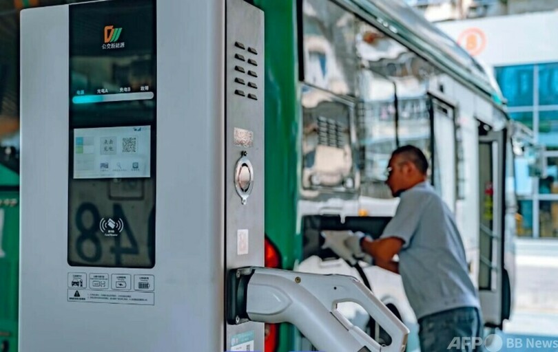 現在、成都バスはすでにEV車両と電力網が連携するスマート充放電ステーションを設けており、計52台の双方向インテリジェント充放電端末を配備しています。(c)CGTN Japanese/AFPBB News