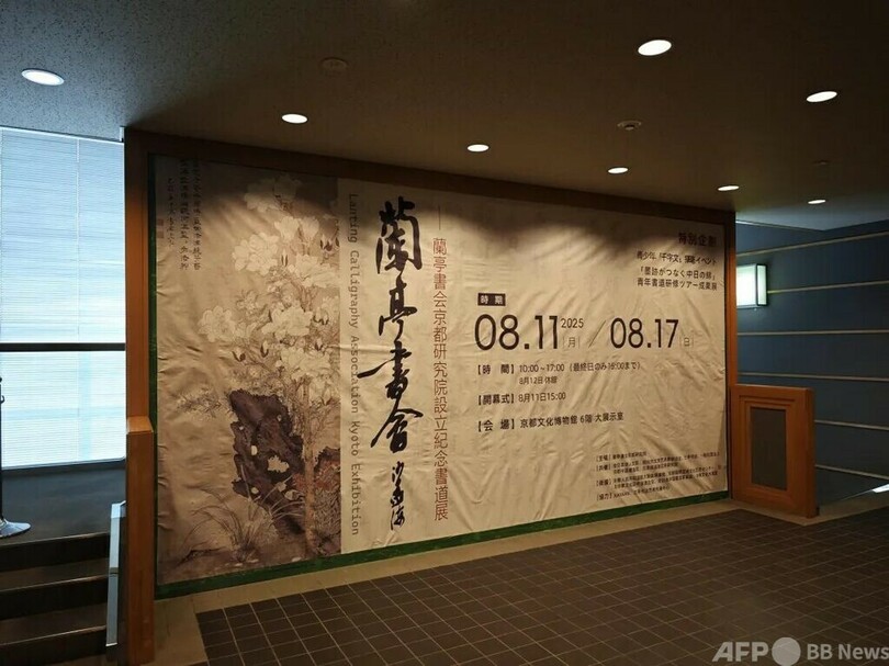 記念書法展は8月17日まで開催される。主催は蘭亭書会京都研究院、共催は全日本華人文連、紹興市文学芸術界連合会、一般社団法人蘭亭書会、京都中国書画院、日本呉昌碩芸術研究院。中華人民共和国駐大阪総領事館、京都国際芸術文化交流センター、KANKANなど日中両国の官民機関が後援している。(c)東方新報/AFPBB News