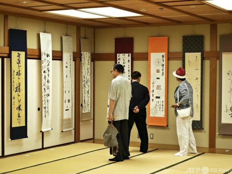 記念書法展は8月17日まで開催される。主催は蘭亭書会京都研究院、共催は全日本華人文連、紹興市文学芸術界連合会、一般社団法人蘭亭書会、京都中国書画院、日本呉昌碩芸術研究院。中華人民共和国駐大阪総領事館、京都国際芸術文化交流センター、KANKANなど日中両国の官民機関が後援している。(c)東方新報/AFPBB News