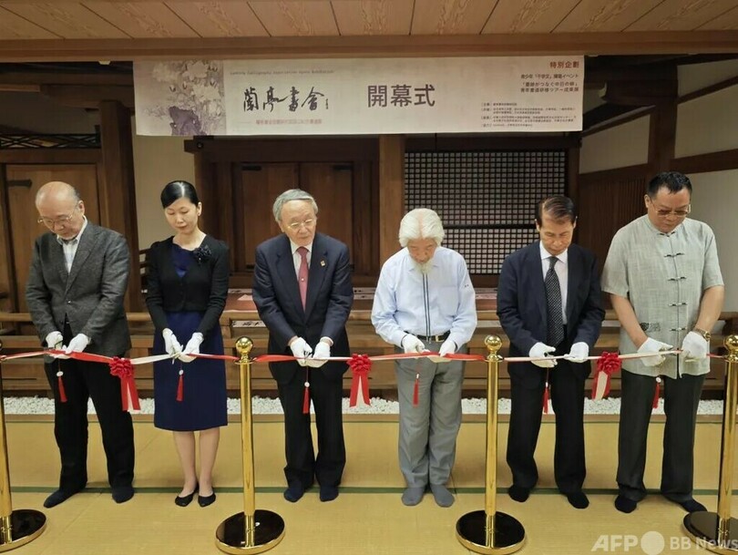 記念書法展は8月17日まで開催される。主催は蘭亭書会京都研究院、共催は全日本華人文連、紹興市文学芸術界連合会、一般社団法人蘭亭書会、京都中国書画院、日本呉昌碩芸術研究院。中華人民共和国駐大阪総領事館、京都国際芸術文化交流センター、KANKANなど日中両国の官民機関が後援している。(c)東方新報/AFPBB News