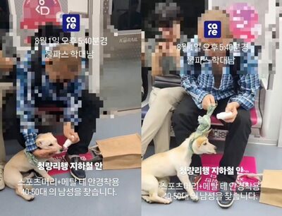 【08月16日 KOREA WAVE】ソウルの地下鉄車内で、中型犬の全身に刺激性のあるメンターム系らしき薬品を塗りつける男が目撃された。動物保護団体「ケア」が4日、動物が虐待だとして映像を公開した。