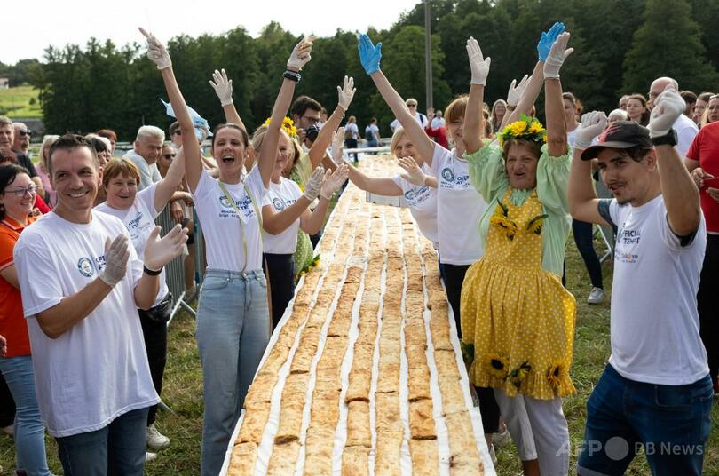 【9月7日 AFP】クロアチアで6日、伝統的な焼き菓子のシュトルーデルが3キロメートル以上の長さに並べられ、その列で世界記録に認定された。