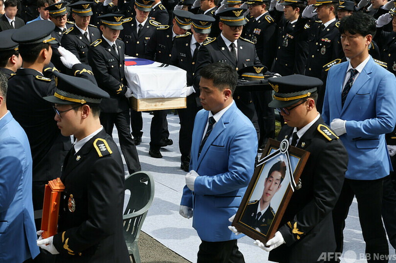 韓国 中国人救出中に殉職した海洋警察官の告別式を開く