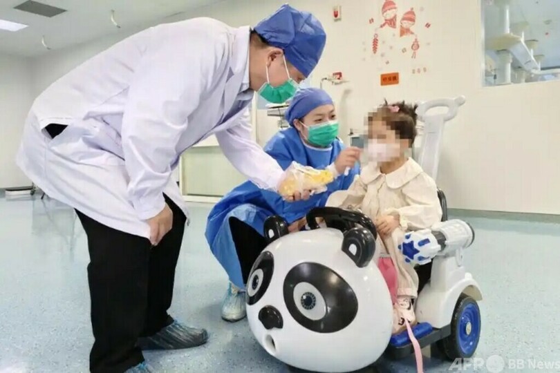 南京市児童医院は天津泰達国際心血管病医院、補助人工心臓(VAD)の研究開発に従事する航天泰心科技と共同で、患児の画像データに基づいて胸腔モデルを等比縮尺で3Dプリントし、第3世代磁気浮上人工心臓技術により、低年齢患児に適した埋め込み型人工心臓を開発しました。この小児型磁気浮上心室補助装置は、単体ポンプの重さがわずか70グラムほどで、低溶血リスク、高適合性の特徴があり、血流バランスの難題を解決するだけでなく、血栓リスクを下げ、低年齢・低体重の患児への適合性を大幅に高めることができるとのことです。(c)CGTN Japanese/AFPBB News
