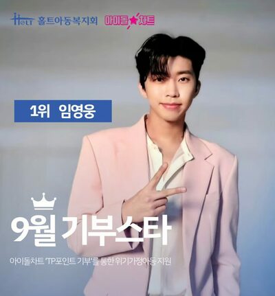 【10月14日 KOREA WAVE】韓国の社会福祉団体ホルト児童福祉会は13日、トロット歌手イム・ヨンウンが9月の「寄付スター」に選ばれたことを記念し、ファンがK-POPアプリ「アイドルチャート」を通じて集めた寄付金を同会に届けたと明らかにした。