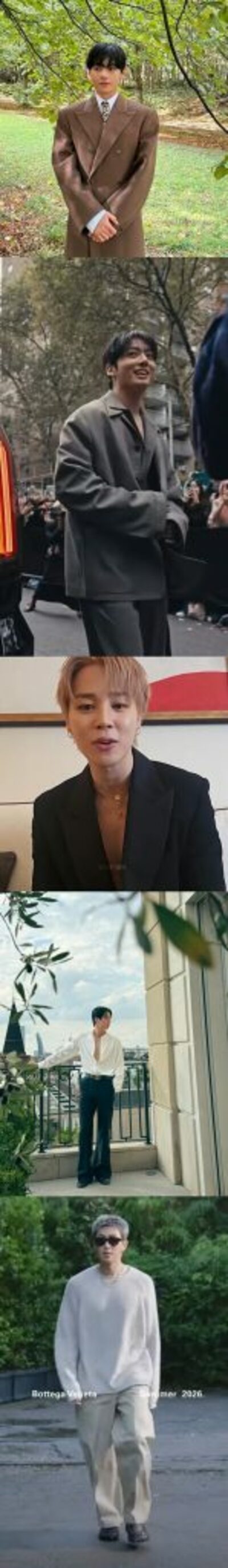 ジミンは10月1日、パリで開かれたディオールのショーに登場。黒のブレザーにレザーのパンツを合わせ、金髪スタイルで注目を浴びた。Vは10月5日のセリーヌのショーで茶色のオーバーコート姿を披露。ジンは9月24日、ミラノでグッチの公式ゲストとして白黒のアンサンブルで登場した。